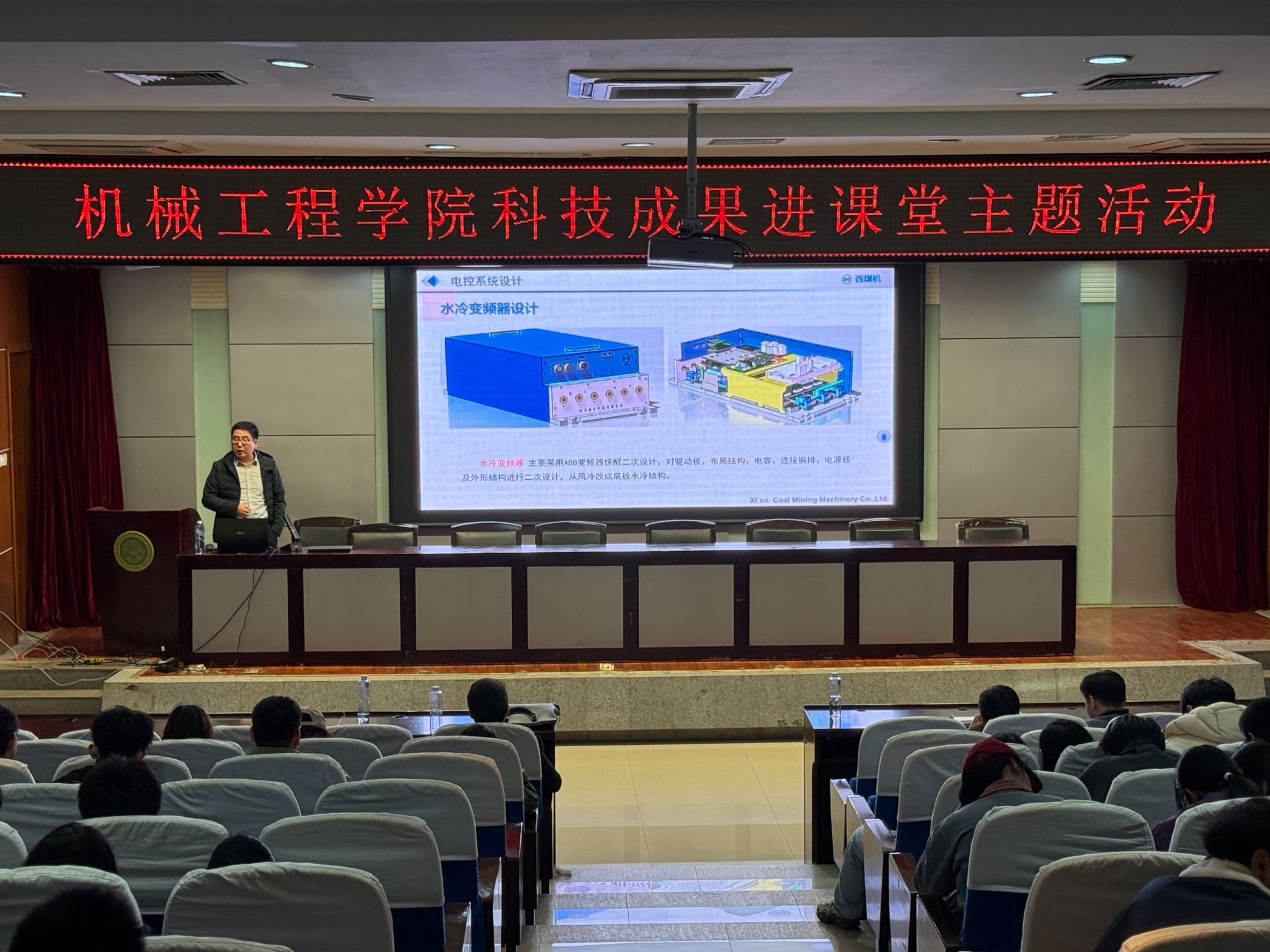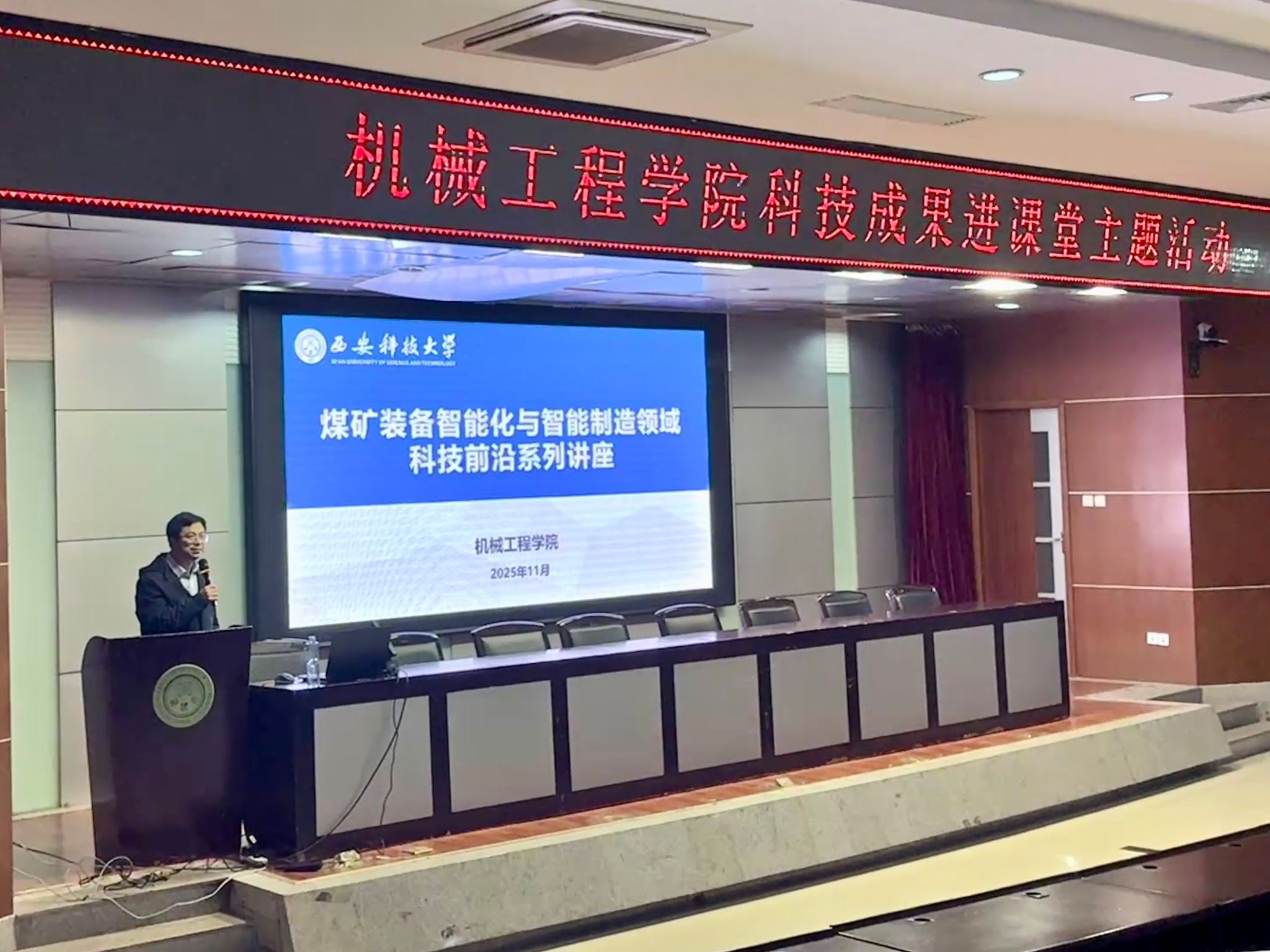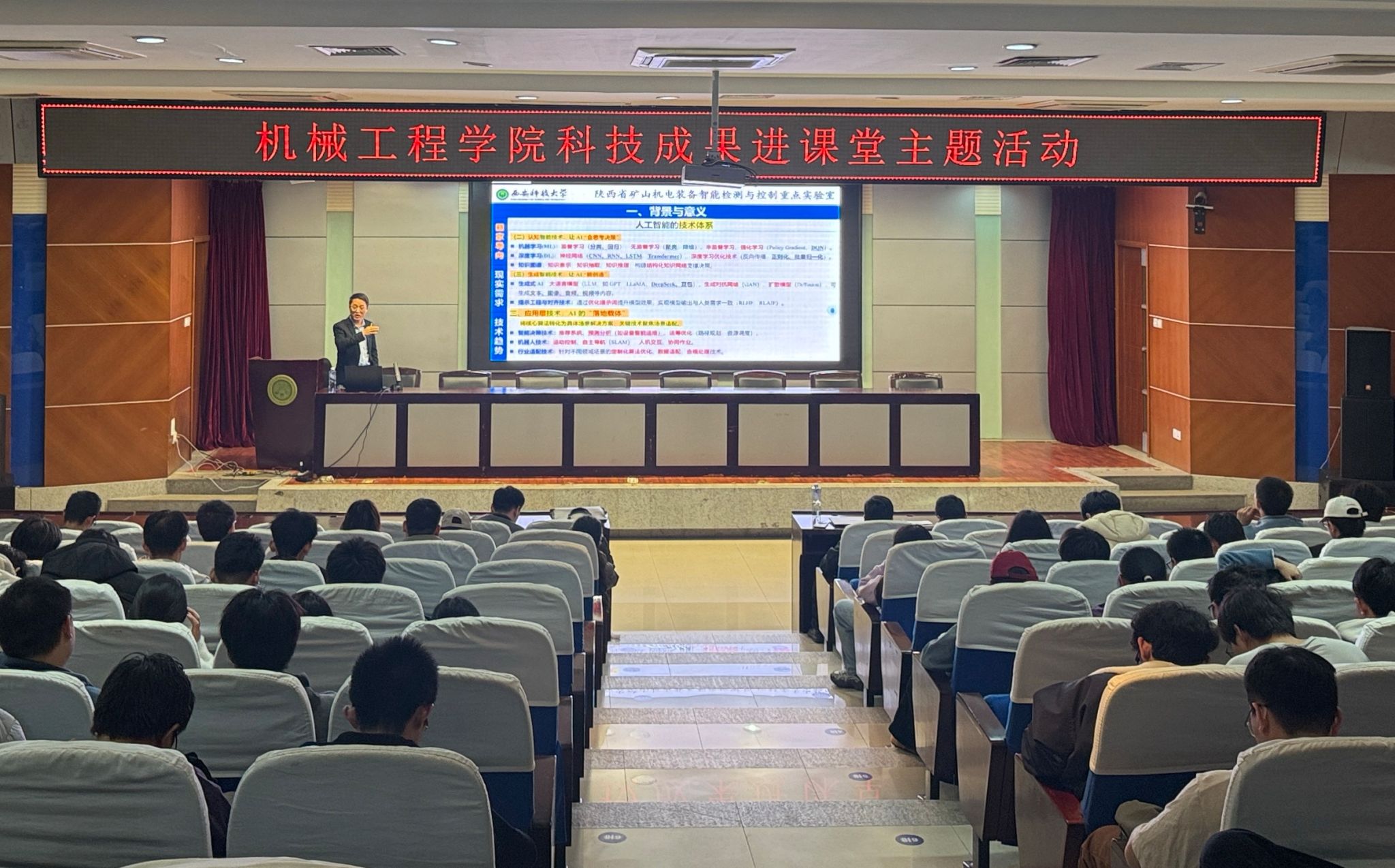 为积极对接国家“十五五”规划对智能制造、能源安全与科技自立自强的战略导向,深入贯彻落实《白菜网大全论坛科研成果反哺教学工作实施管理办法(试行)》《白菜网大全论坛本科生产教融合、科教融汇育人实施办法(试行)》等文件精神,7003全讯白菜网依托陕西省煤矿智能化现代产业学院等平台,将“科技成果进课堂”从构想转化为生动实践,11月3日晚,7003全讯白菜网在图书馆二楼报告厅成功举办“科技成果进课堂”主题活动首场报告会——“煤矿采掘装备智能化”“煤矿装备智能故障诊断与健康维护”。本场讲座由机械电子系和仪器科学系牵头组织,学院首届本硕连读班和机电专业300余名学生参加学习,副院长毛清华教授主持讲座。