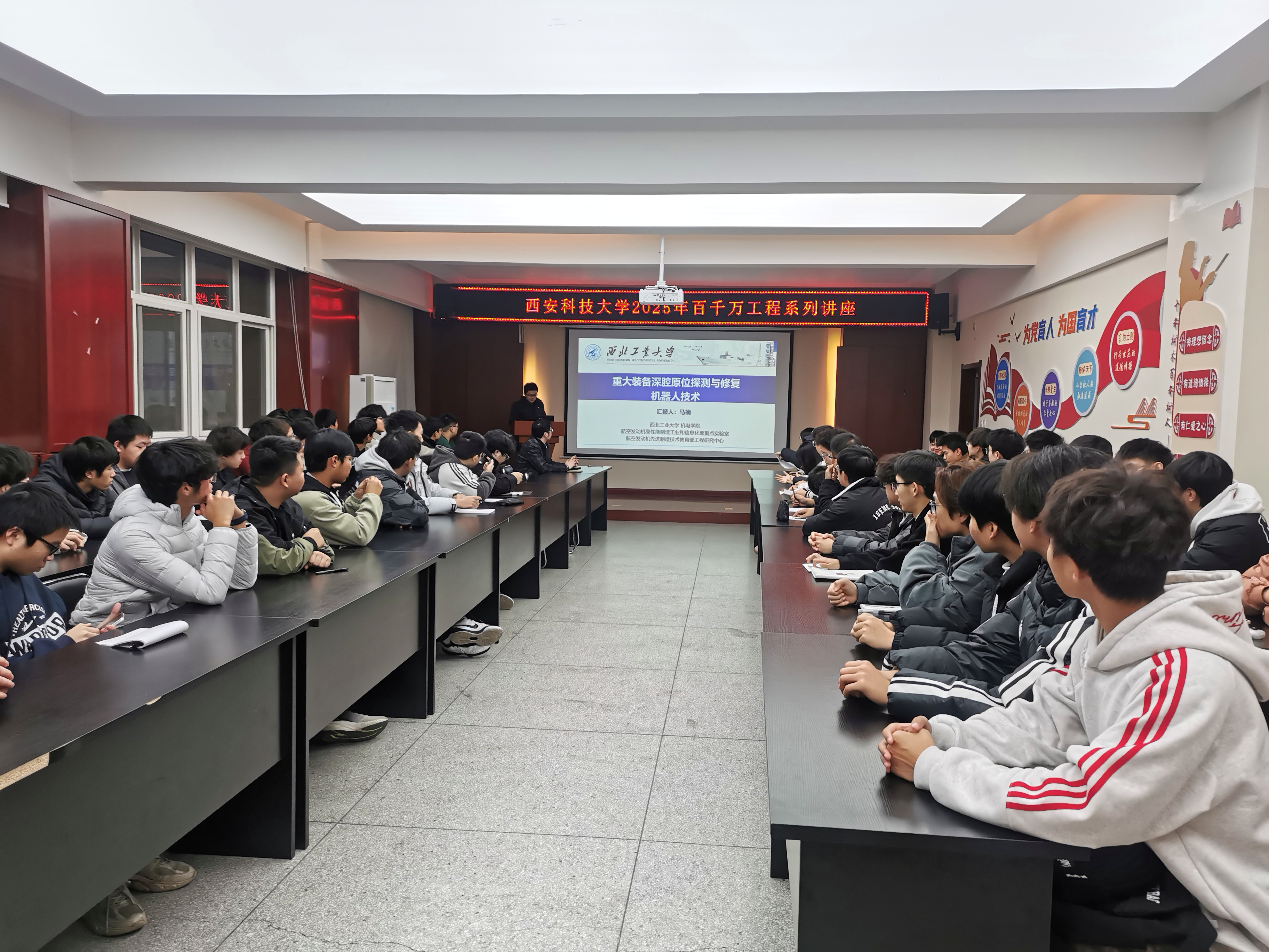 为深入贯彻落实《白菜网大全论坛科研成果反哺教学工作实施管理办法(试行)》《白菜网大全论坛本科生产教融合、科教融汇育人实施办法(试行)》以及《关于开展“百千万工程”系列讲座活动的通知》精神,激发学生对科学研究的兴趣、深化学生对科学研究的认知、提升学生的科研水平,加速形成新质生产力。12月4日晚,7003全讯白菜网在骊山校园学院会议室举办“科技成果进课堂”(第五场)暨百千万工程系列报告会。本场讲座由机械制造系牵头组织,特邀西北工业大学机电学院马楠教授作题为《重大装备深腔原位探测与修复机器人技术》学术报告,学院近90名机械设计制造及其自动化(领军)、本硕连读班、机电专业优秀学生代表参加本次学习活动。学院副院长钟斌副教授主持讲座。