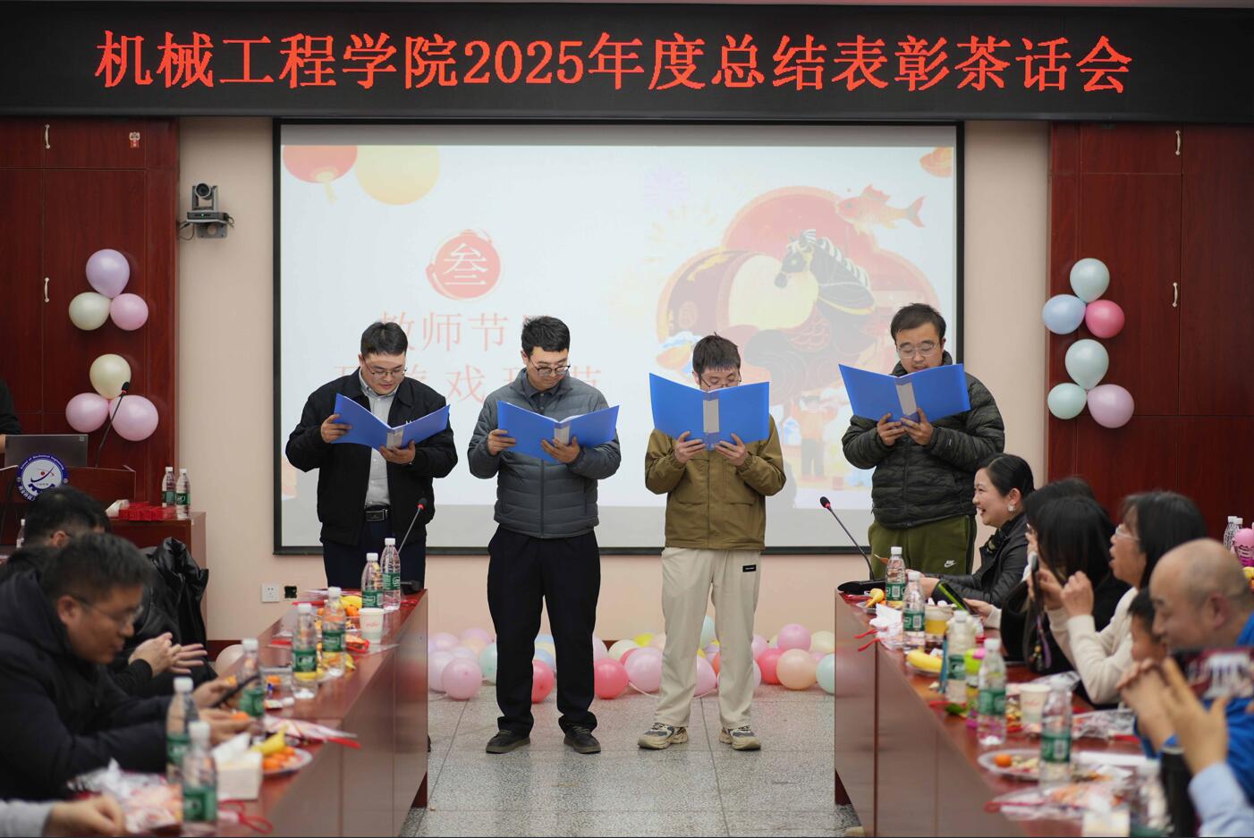 活动第二阶段为表彰环节。学院对2025年度在就业工作中表现突出的机械制造系、机械设计系、车辆工程系授予“就业工作先进集体”荣誉称号,郭小平、曹现刚为获奖集体颁发了奖牌和奖品。同时,对在本科教学、研究生教育、科技竞赛、科研创新、学科建设、工会服务等工作中取得优异成绩的个人进行了表彰。学院班子成员依次为获奖教师颁发荣誉证书,现场气氛热烈,掌声不断。